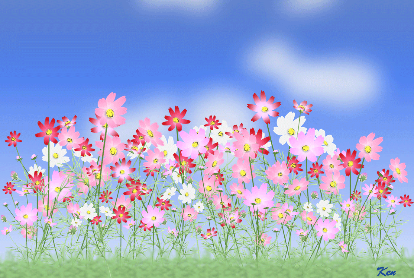 中秋の名月 コスモス