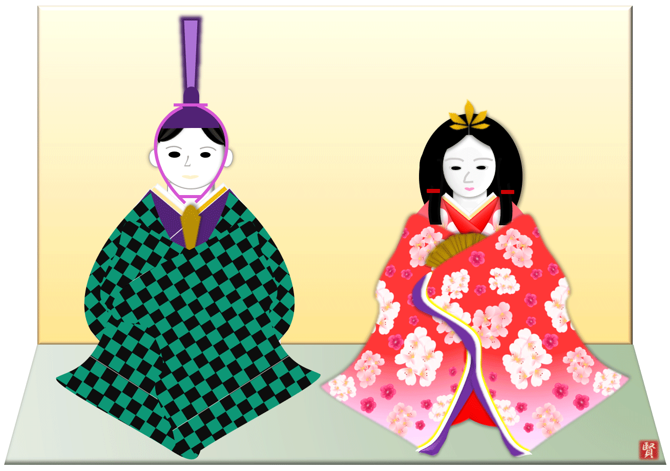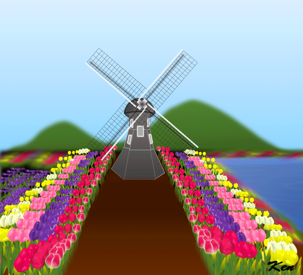 風車とチューリップ 人物 ひな祭り